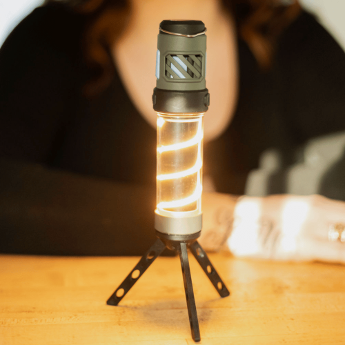 The Buzz Defender Pro features three lighting modes on its flashlight (high, medium, low) and two modes on its lantern (steady and flicker). The high mode provides ample brightness for navigation and tasks, while the lower settings are perfect for ambient lighting at gatherings or in tents.